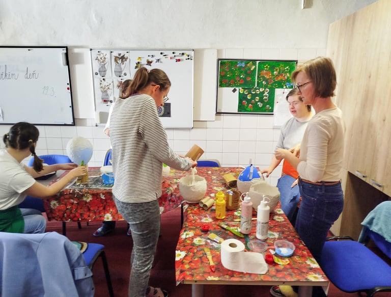 Engaging disabled participants in therapeutic workshops to enhance emotional expression and creativity through various art mediums.